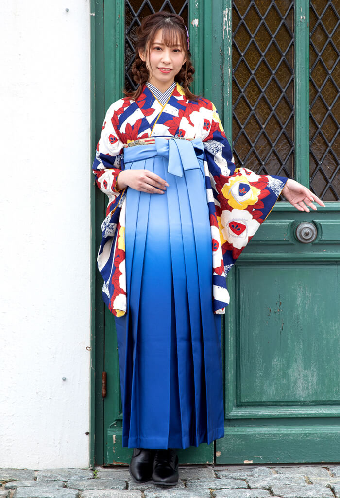 ブルー系の袴は、水色や紺色のほかにもグラデーションカラーやワンポイントの柄物を揃えています。