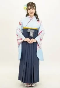 「知的で爽やかな雰囲気の袴姿に仕上げたい!」という方におすすめなのが、水色と紺色を合わせたこちらの袴コーデです。