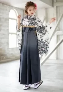 そこにグレーの袴を合わせて寒色系で統一することで、クールで大人な雰囲気を演出できます。