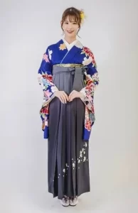 そこにグレーの袴を合わせて寒色系で統一することで、クールで大人な雰囲気を演出できます。