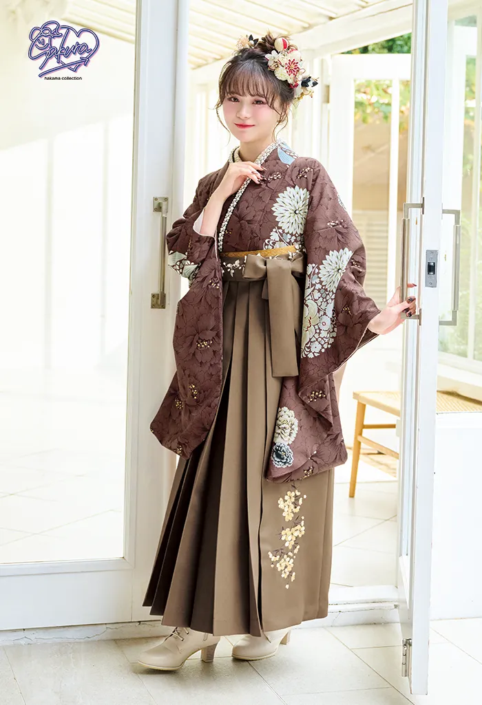 女袴はスカートのような構造になっているのが特徴で、ふんわりと広がるシルエットがエレガントな印象を与えてくれます。