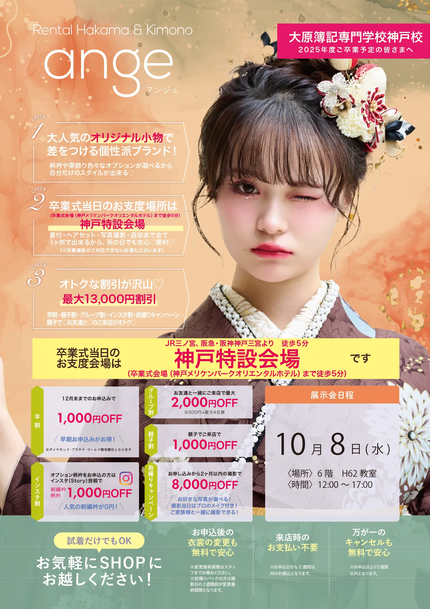卒業式袴レンタルで着付け・ヘアセット・写真撮影ができるアンジュ