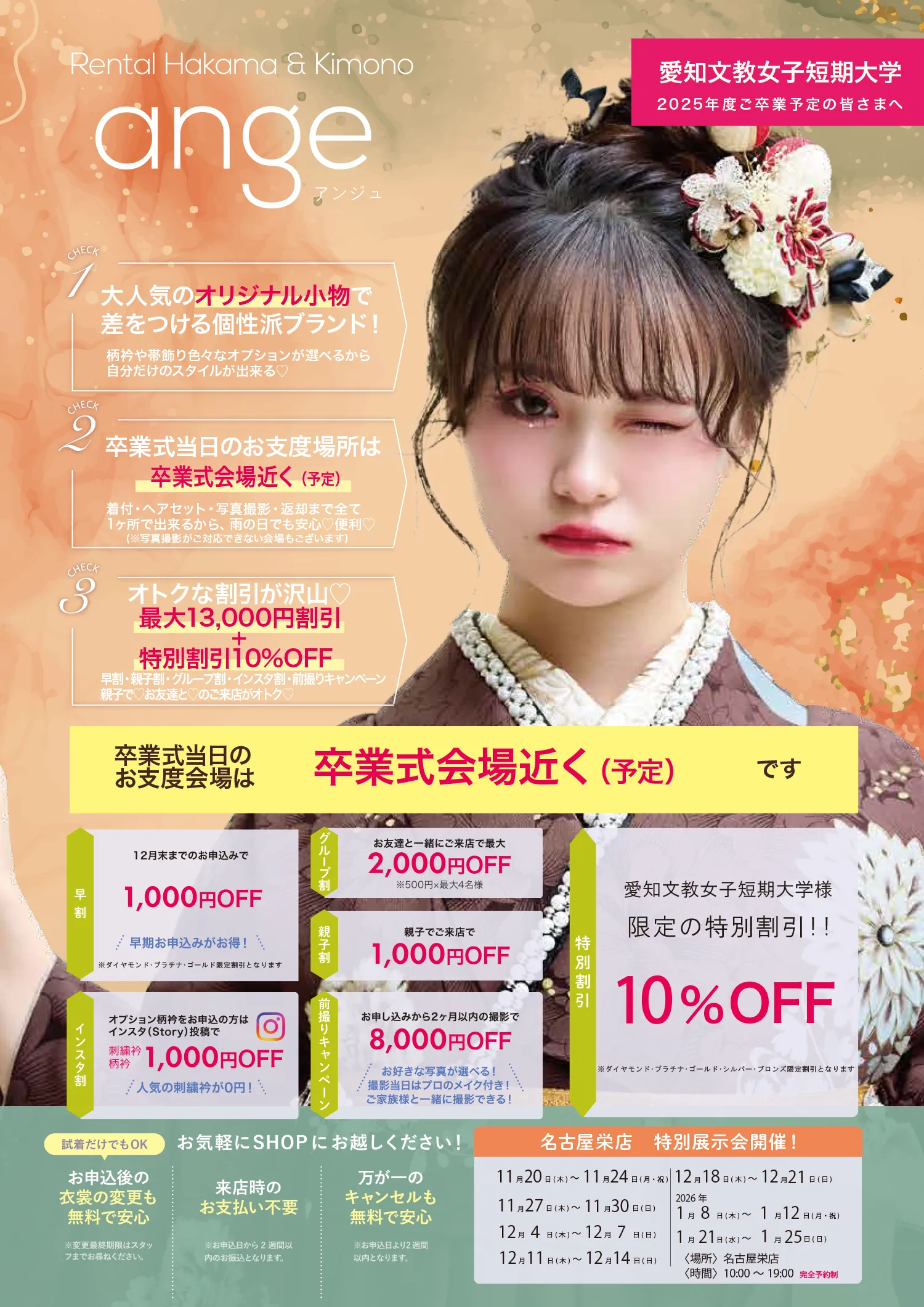 卒業式袴レンタルで着付け・ヘアセット・写真撮影ができるアンジュ